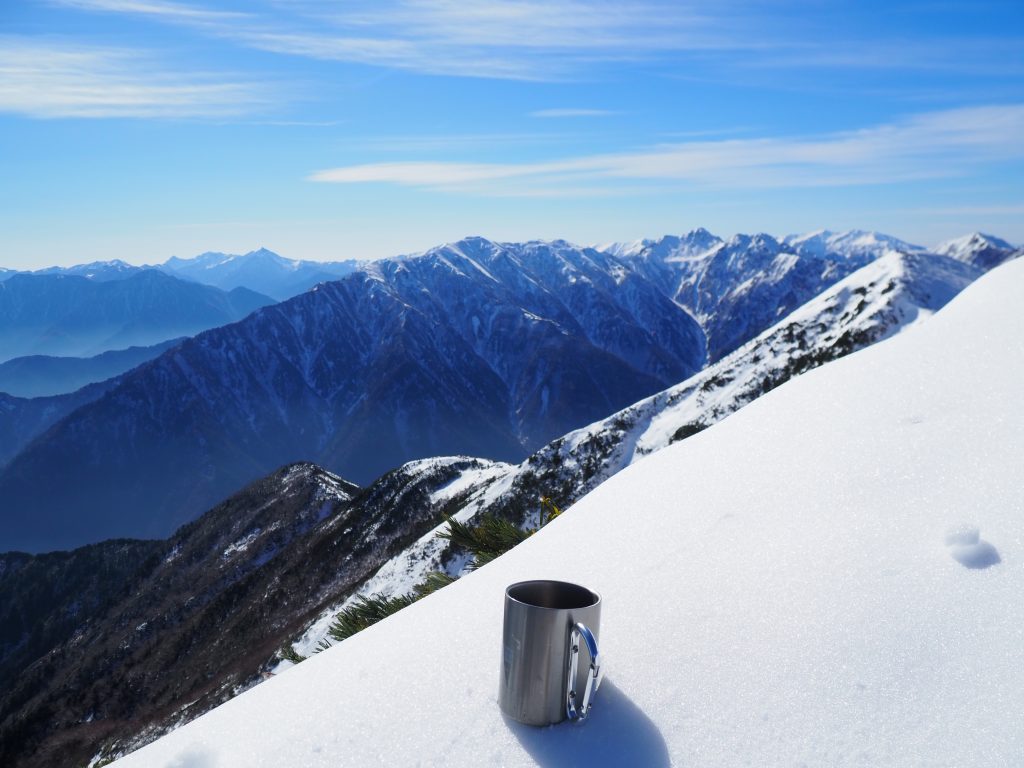 コーヒーを煎れて誰もいない山頂で音楽をかけて、1時間弱山々を眺めながら至福の時間をすごした。