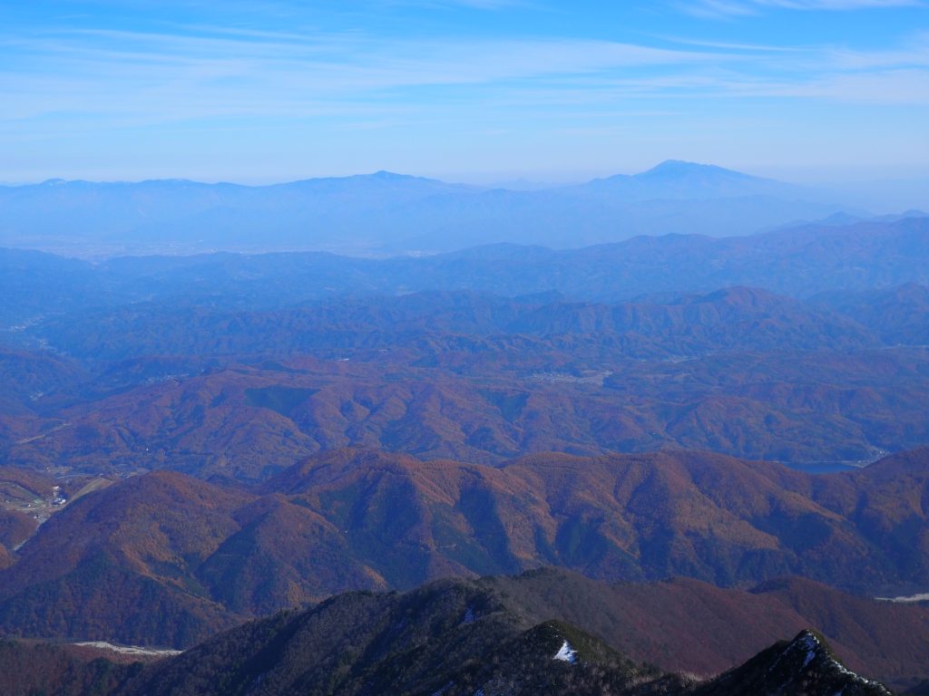 里山の紅葉が美しい。四阿山と浅間へつづく山並み