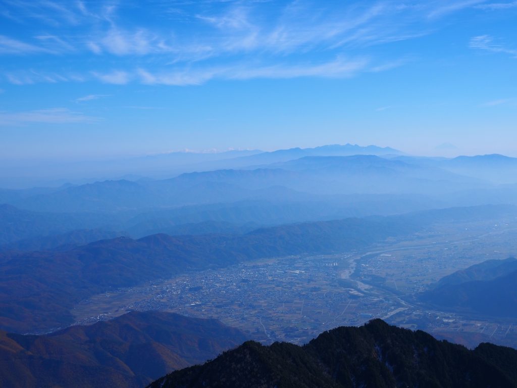 大町と秋の空 奥に八ヶ岳とうっすら富士山
